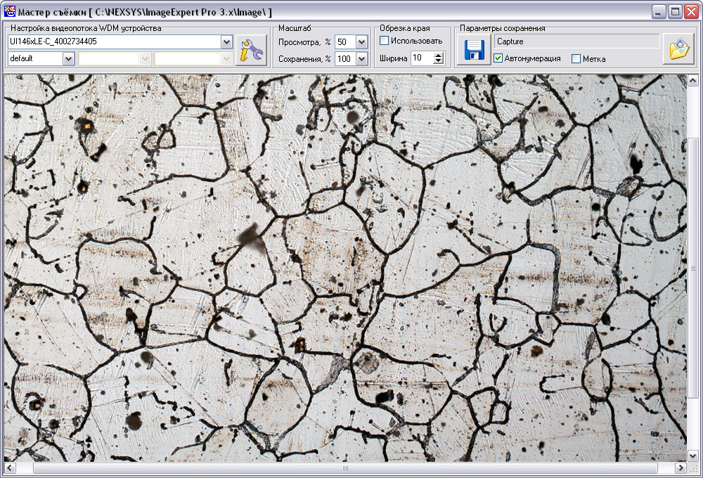 Мастер съёмки отображает «живое» изображение структуры образца на экране компьютера, позволяя выбирать