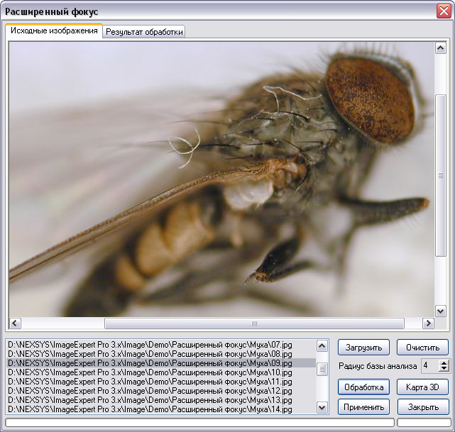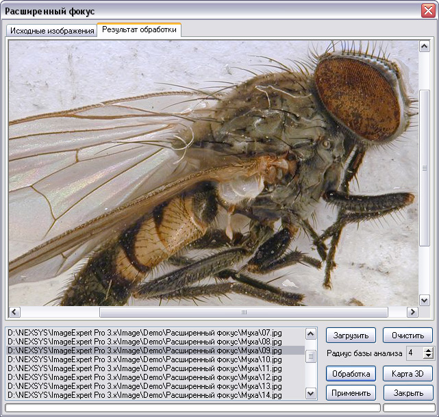 ImageExpert Pro реализован механизм послойной микроскопии. При съёмке под микроскопом недостаточную глубину фокуса