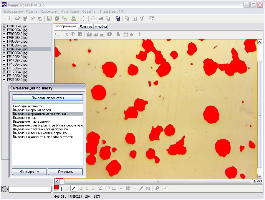 неметаллических включений, графитовых включений в чугуне. Пользователь при необходимости может самостоятельно
